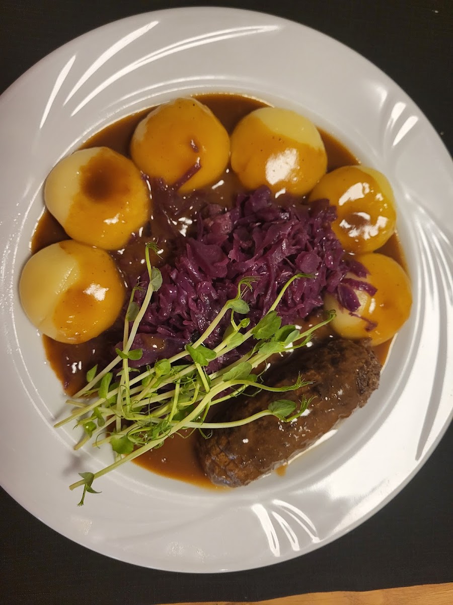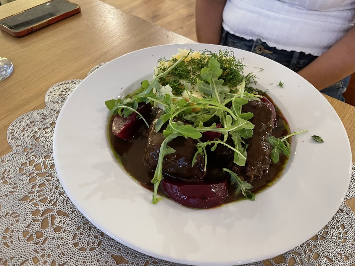 One of the highlights of Lawendowy Dworek’s menu is its Golonko, a flavorful and tender pork knuckle, slow-cooked to perfection. It’s a dish that captures the essence of hearty Polish cooking. Another standout is the Udko Z Gęsi Z Kluskami I Czerwoną Kapustą, a beautifully roasted goose leg served with soft dumplings and tangy red cabbage. For those craving something comforting, the Rosół, a rich and aromatic chicken broth, is a must-try - a true Polish classic that warms the heart and satisfies the soul.
